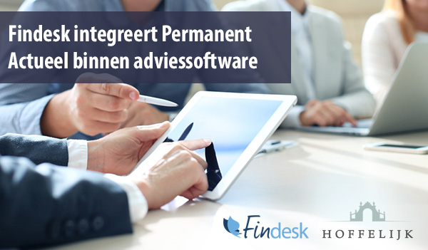 Findesk, een aanbieder van financiële adviessoftware, heeft Permanent Actueel in haar adviessoftware geïntegreerd. Daarmee kan Findesk haar klanten optimaal adviseren op basis van de meest actuele ontwikkelingen.