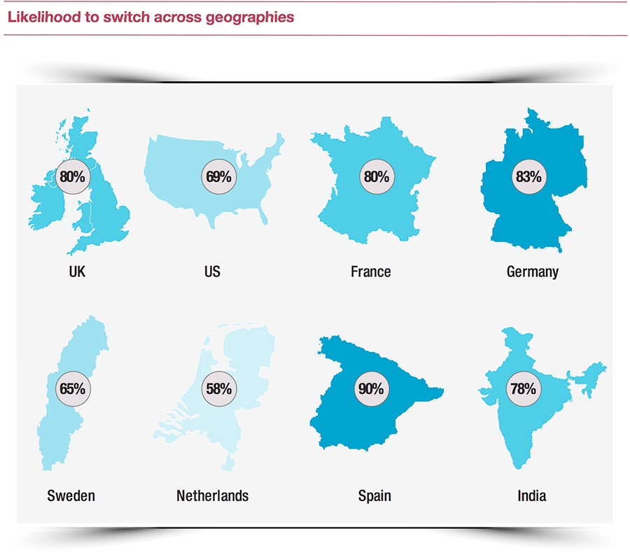 Ten tijde van het onderzoek geeft maar een derde van de ondervraagde managers aan dat er sterke vorderingen worden geboekt bij het implementeren van de ontwerprichtlijnen in het kader van de nieuwe wet. Zhiwei stelt: “De introductie van de GDPR wetgeving volgend jaar is een uitstekende kans voor banken en verzekeraars om daadwerkelijk te transformeren tot de digitale forten die ze in de ogen van consumenten zijn.” Doen zij dat niet dan lopen zij grote kans dat klanten een andere bank gaan zoeken. 74% van de consumenten geeft aan van financiële dienstverlener te willen wisselen in het geval van een datalek. Nederlanders blijken van de onderzochte landen het trouwst aan hun bank of verzekeraar – in ons land geeft 58% van de consumenten aan van bank te zullen switchen bij een datalek, ten opzichte van tussen de 65% (Zweden) en 90% (Spanje) in de andere onderzochte landen.