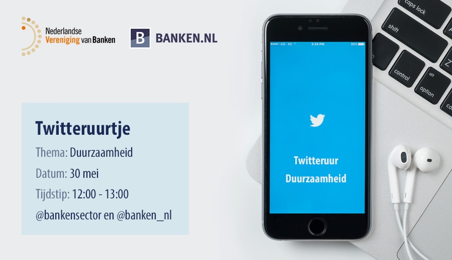 Hoe kunnen banken nog meer bijdragen aan een duurzame economie? Live twitteren hierover met vertegenwoordigers van de bankensector kan op dinsdag 30 mei a.s. van 12-13 uur. Stem af op de betrokken Twitteraccounts @bankensector en @banken_nl!