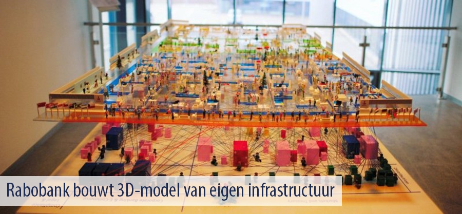 De Rabobank heeft een driedimensionaal schaalmodel gemaakt van de IT-infrastructuur van de eigen internationale organisatie. De bank verwacht dat de creatie van dit model een bijdrage levert aan verbeteringen in de digitale infrastructuur. Door praktisch te visualiseren wil Rabobank ontdekken waar het anders of beter kan.