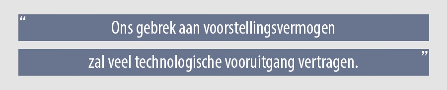 Het idee van een chip in iemands hersenen die via wifi communiceert doet zelfs in dit gezelschap nog wel wat gegniffel opwekken. Blijkbaar gaat dit ook mensen die dagelijks met complexe IT bezig zijn nog de pet te boven. En dat is een mooi voorbeeld van wat zoveel wetenschappers roepen. Technologie zal exponentieel groeien. Verdubbeling na verdubbeling volgt elkaar op. Dertig keer verdubbelen en technologie is een miljard keer sneller of groter of goedkoper. Technologische kennis zal een snelle groei van AI en aanverwante technieken dus niet tegenhouden, maar wel de mens zelf. ‘De techniek kan wel exponentieel groeien, maar wij mensen blijven lineair denken. Ons gebrek aan voorstellingsvermogen zal veel technologische vooruitgang vertragen.’