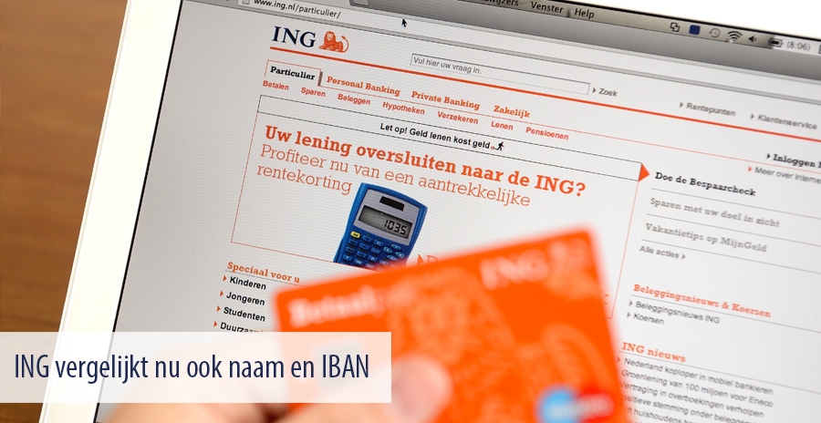 Per direct kunnen consumenten van ING gebruikmaken van de IBAN-Naam Check, bij het doen van een overboeking via internetbankieren. Het risico op foute overschrijvingen wordt daarmee verder teruggebracht. De oranje bank komt hiermee naar buiten op dezelfde dag dat drie dochters van de Volksbank - ASN Bank, RegioBank en SNS - de techniek invoeren voor hun mobiel bankieren apps. Waar ING de techniek eerst introduceert voor interbankieren, doen de Volksbank-dochters dat juist voor de mobiel bankieren apps. Rond de zomer doen ze allebei het omgekeerde.