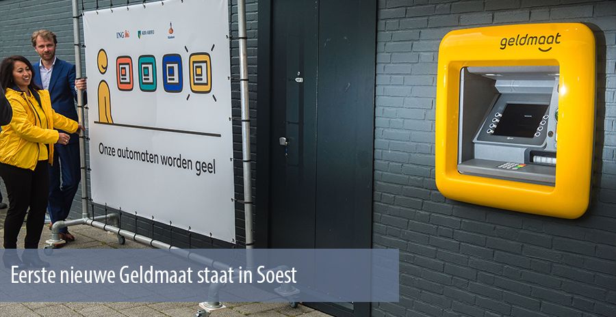 Het Utrechtse Soest heeft de eerste nieuwe generatie geldautomaat mogen verwelkomen, de Geldmaat. Over het hoofd zien is niet evident, ze zijn namelijk knalgeel. Het is de start van een transitie van geldautomaten met duidelijke ‘branding’ naar een netwerk van neutrale geldautomaten, ondersteund door de drie grote Nederlandse banken.