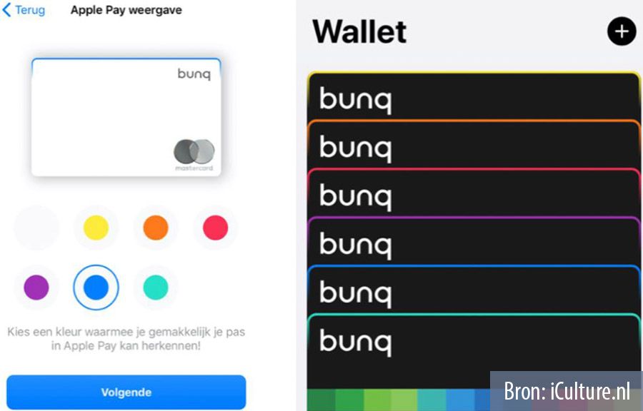 Bunq laat gebruikers kleuren wijzigen van Apple Pay kaarten