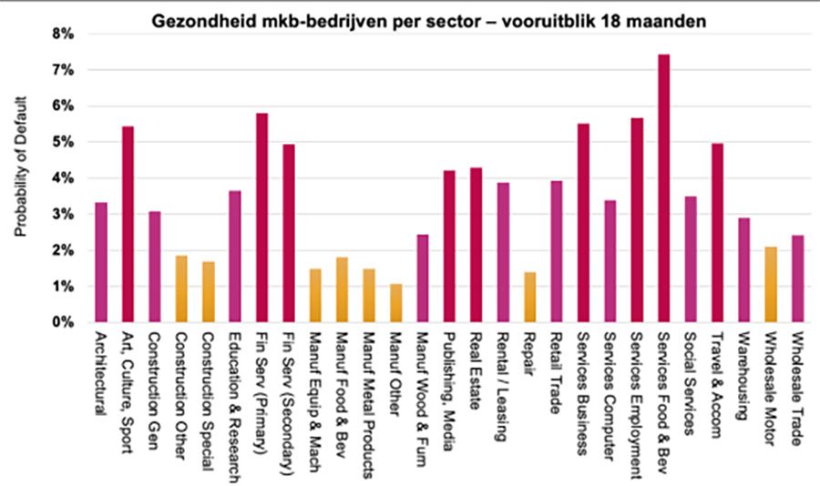 Ook verwacht Experian dat het wanbetalingspercentage in de meest kwetsbare sectoren zal oplopen tot 6% of hoger. Vooral kleine bedrijven met minder dan vier werknemers staan onder grote financiële druk. Bedrijven in de horecasector (7%), toerismesector (5%) en uitzendsector (5,5%) lopen het grootste risico om binnen achttien maanden failliet te gaan.