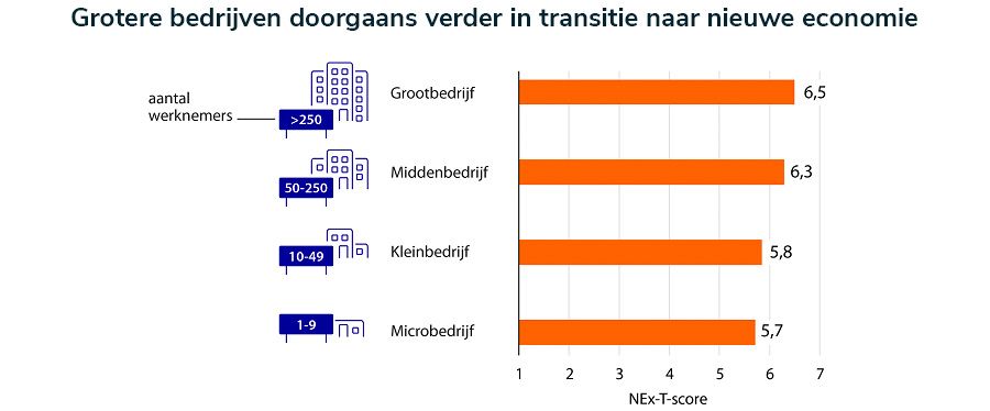 “En het hoeft financiële prestaties ook helemaal niet in de weg te staan. Uit ons onderzoek blijkt namelijk dat bedrijven met een hogere NEx-T score eerder meer dan minder omzet draaien. Sociale en ecologische waarden gaan dus prima hand in hand met financiële waarde.”