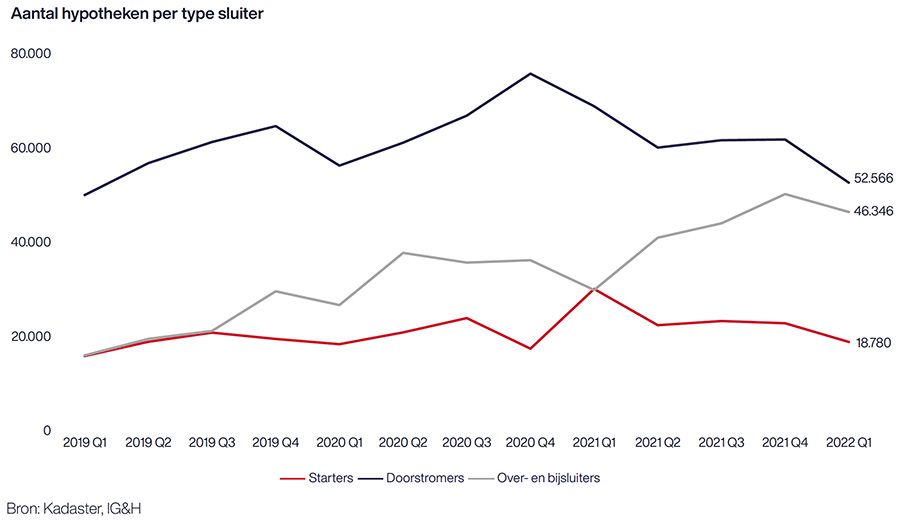 “De groei onder over- en bijsluiters komt doordat veel over- en bijsluiters nog hun hypotheekrente proberen over te sluiten nu de rentes flink aan het stijgen zijn”, legt Joppe Smit (directeur van IG&H) uit. “De sterke daling in de aankoopmarkt is een teken dat hypotheekverstrekkers rekening moeten gaan houden met een aanzienlijk lager marktvolume dan in de afgelopen jaren is opgebouwd.”