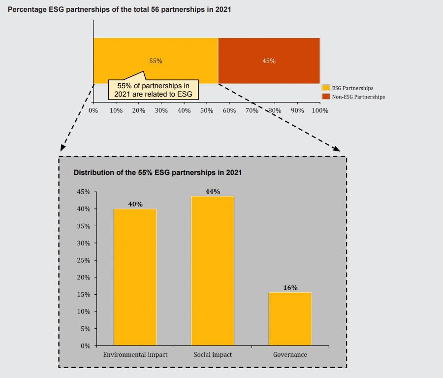 Uit de studie blijkt niet alleen dat ESG-partnerships in 2021 dominant zijn geworden, de trend zou zich in de eerste twee kwartalen van 2022 zelfs versneld hebben doorgezet. Verheijen stipt aan dat banken in de eerste zes maanden van het huidige jaar bijna net zoveel samenwerkingen zijn aangegaan als in heel 2021. Ook in 2022 schuilt er bij de meeste gevallen een ESG-reden achter de partnership.
