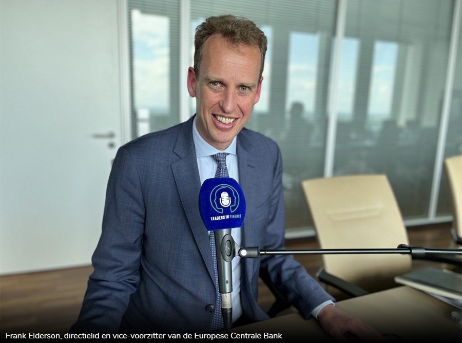 Voor zijn Leaders in Finance-podcast reisde gastheer Jeroen Broekema deze keer naar de financiële hoofdstad van de EU: Frankfurt am Main, voor een gesprek op niveau (39e verdieping) met Frank Elderson, lid van de executive board en vice-voorzitter van de raad van toezicht van de Europese Centrale Bank (ECB). De twee wisselden stevig van gedachten over onder meer het klimaat.