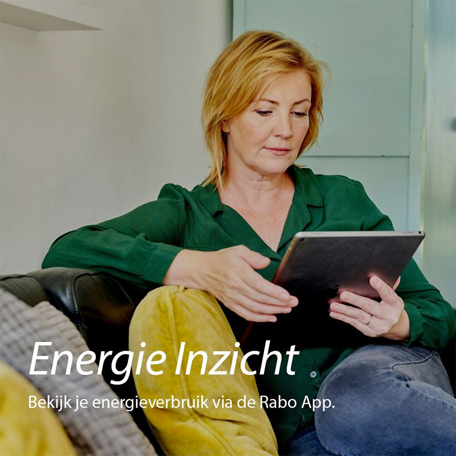 Energie Inzicht is een functionaliteit binnen de Rabo App en staat, mits een klant hiervoor toestemming heeft gegeven, in verbinding met een slimme meter. De functie geeft niet alleen inzicht in het huidige gebruik, maar biedt ook tips (opgesteld in samenwerking met Milieu Centraal) om energie te besparen.
