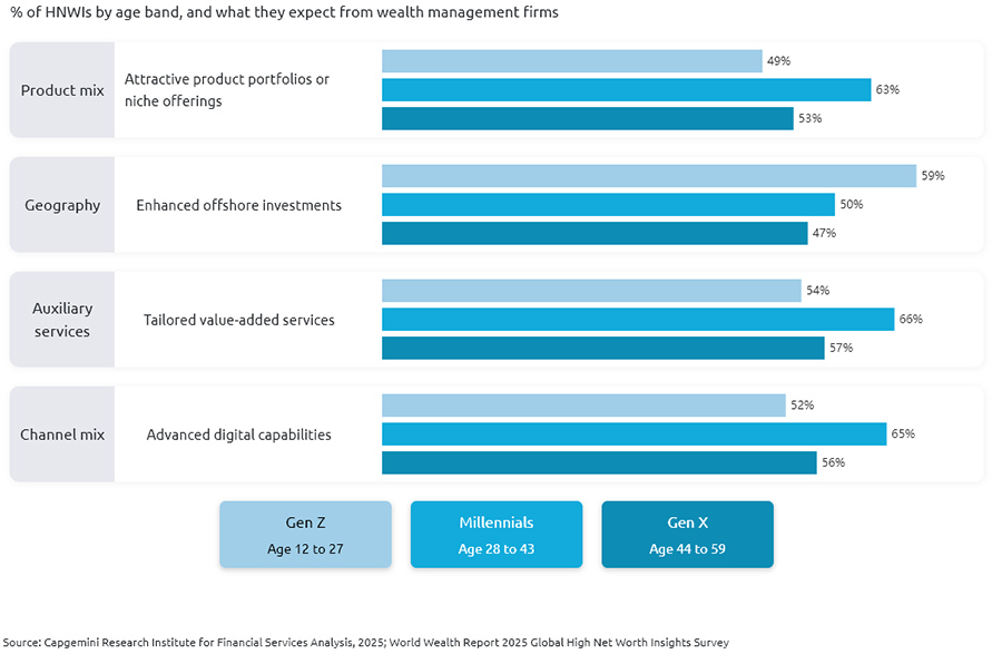 De Capgemini-onderzoekers wijzen er daarnaast op dat er de komende twintig jaar naar verwachting ruim $83 biljoen aan vermogen wordt overgedragen aan een nieuwe generatie vermogenden.