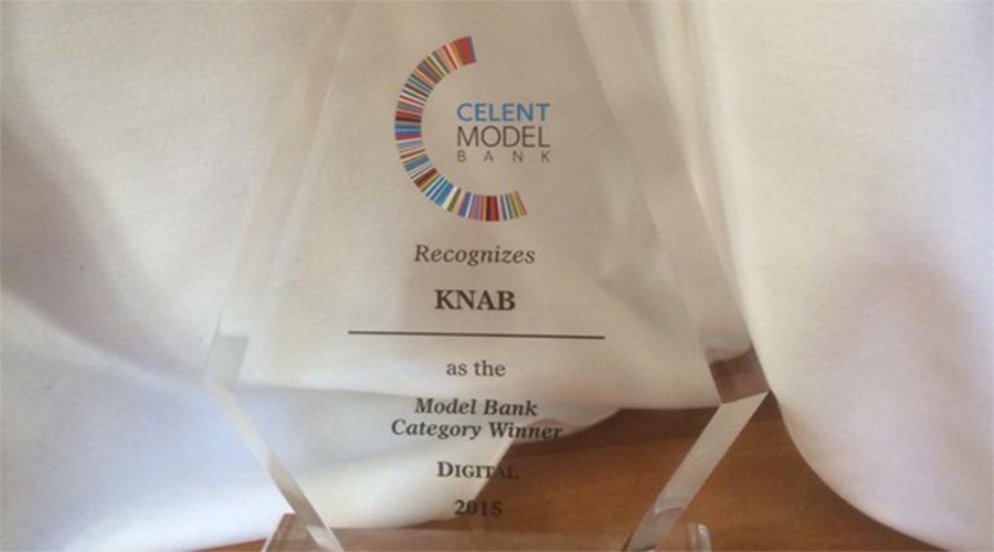 Online bank Knab heeft in New York de Celent Digital Bank Award 2015 gewonnen, omdat de bank het voortouw neemt in innovatief digital banking. De online bank is de eerste Nederlandse bank die deze award wint. Sinds acht jaar wordt deze internationale prijs jaarlijks uitgereikt aan banken die zich onderscheiden in het effectief toepassen van technologie op een specifiek terrein.