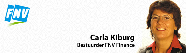 Carla Kiburg, bestuurder FNV Finance: “De boodschap is ondubbelzinnig: extra salarisverhogingen voor topbestuurders bij banken en verzekeraars zijn onacceptabel. Niet alleen omdat tegelijkertijd medewerkers worden ontslagen en zij al jaren nauwelijks salarisverhoging hebben gekregen. Maar ook omdat velen de financiële sector medeverantwoordelijk houden voor de economische crisis. Het voelt onrechtvaardig en dus is er geen begrip. Ingrijpen is essentieel voor het herstel van vertrouwen in de sector.”