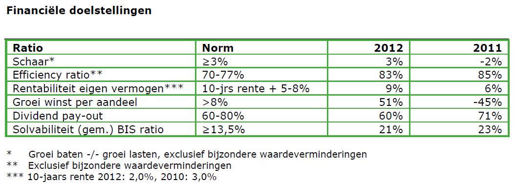 KAS BANK liet over 2012 de volgende resultaten zien: